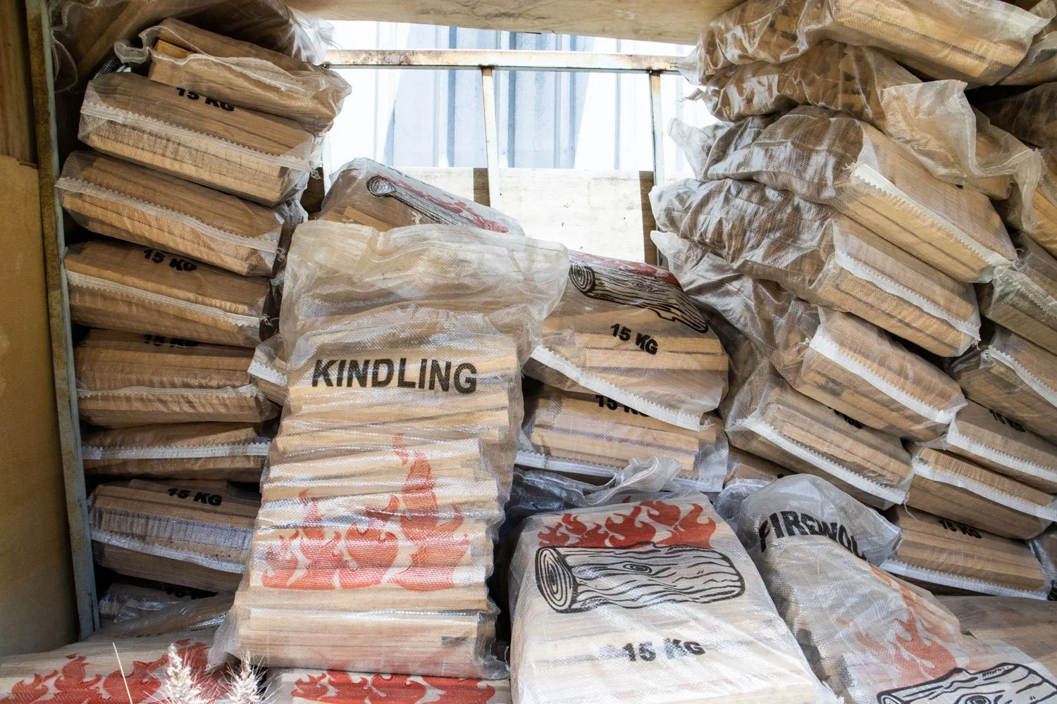 As part of our sustainability practices, we offer 15kg bags of kindling firewood. The kindling firewood is off-cuts of the new and recycled wood used in manufacturing our products.